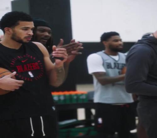 气氛很棒!比卢普斯训练中祝贺三位球员续签约杨瀚森等队友鼓掌