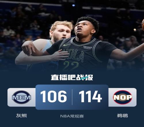 鹈鹕三人20+送灰熊5连败贝22+8锡安21+7小贾伦18中6